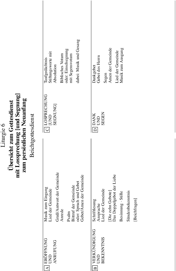 Liturgie 6: | Gottesdienst mit Lossprechung (und Segnung) zum persönlichen Neuanfang (Beichtgottesdienst) | |