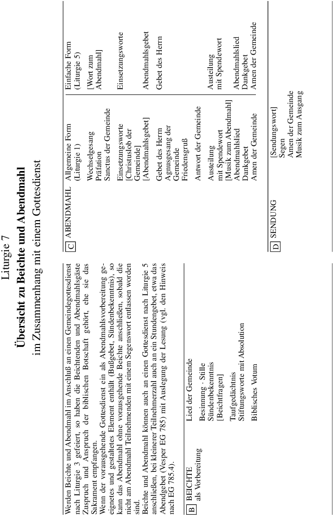 Liturgie 7: | Selbständiger Abendmahlgottesdienst mit Beichte Beichte und Abendmahl im Zusammenhang mit einem Gottesdienst | |